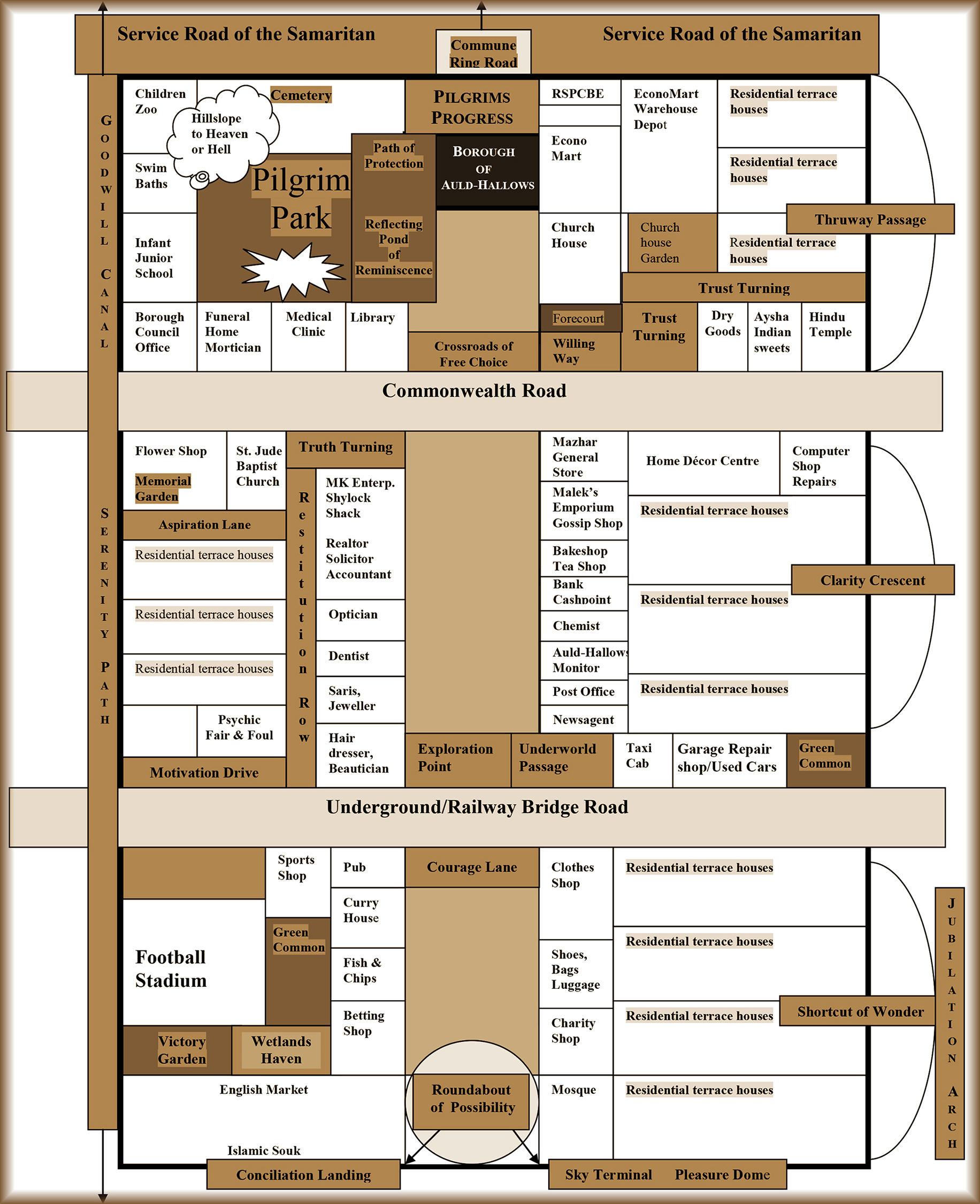 Well, I thought, since haute couture both comes around and goes around, Antoinette dressed in stiff lace, black velvet neckband and Victorian wallpaper-style fabric might, in time, end up stoking a Victoriana revival. Which wouldn’t be all that strange, given the flux of shifting epochs, latitudes and time zones here in Auld-Hallows. Antoinette spent her days creating archaic designs and flowery patterns for an artisan textile firm with factory premises near the newly rechristened SERENITY PATH and GOODWILL CANAL. And her taste in epic verse was just as flowery. She confessed to overdosing on Milton and Shelley, and neither would these dead poets loosen their grip on her poetic tongue.